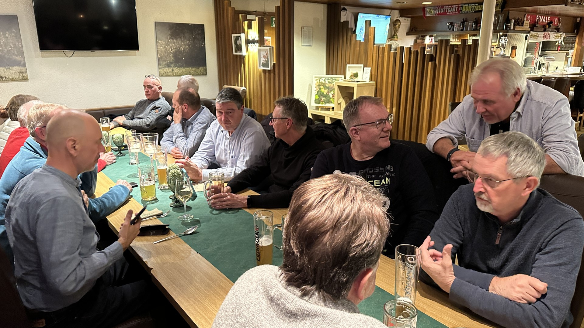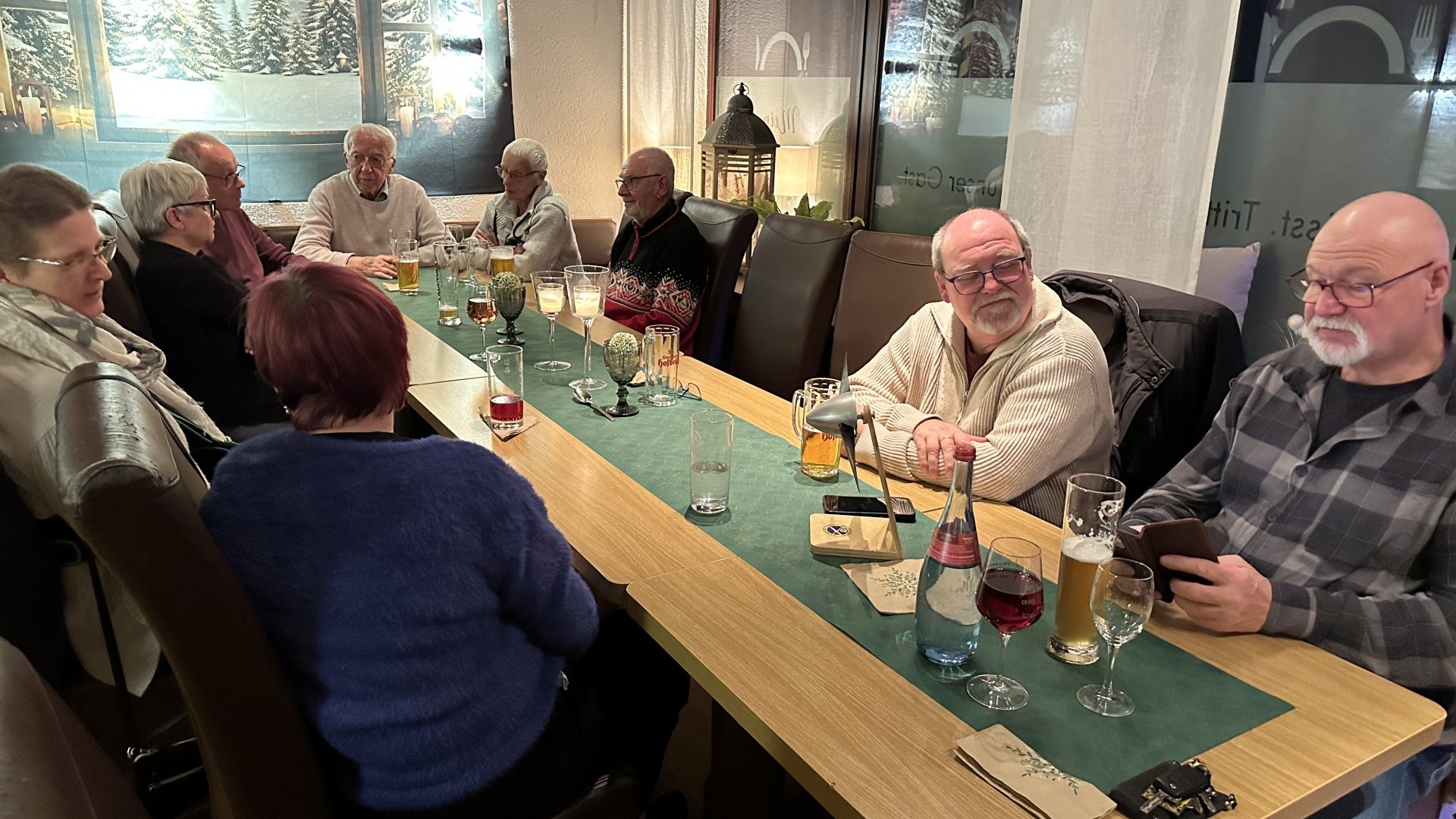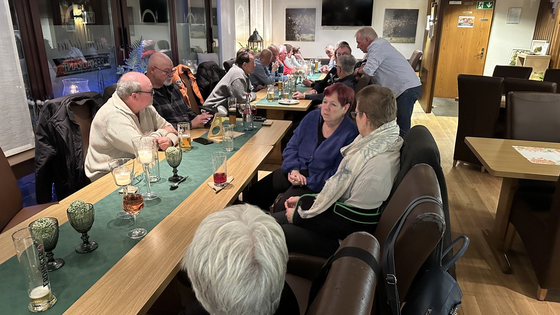 21 Vereinsmitglieder, 8 davon mit Gattin, fanden sich am 21. November 2025 im Fairplay ein, um zusammen die Saison 2025 abzuschließen. Nach den Grußworten des ersten Vorstands ließen sich alle von den Kochkünsten des Fairplay-Wirts verwöhnen: Ein exklusives Hirschgulasch, Zwiebelrostbraten, Schnitzel und der vegetarische Feld-/Wald- und Wiesenteller, um nur einige zu nennen. Eine echt schwäbische Flädlessuppe vorab oder auch ein Eis als Nachgang war auf den von der Fairplay-Wirtin weihnachtlich geschmückten Tischen auch zu sehen.