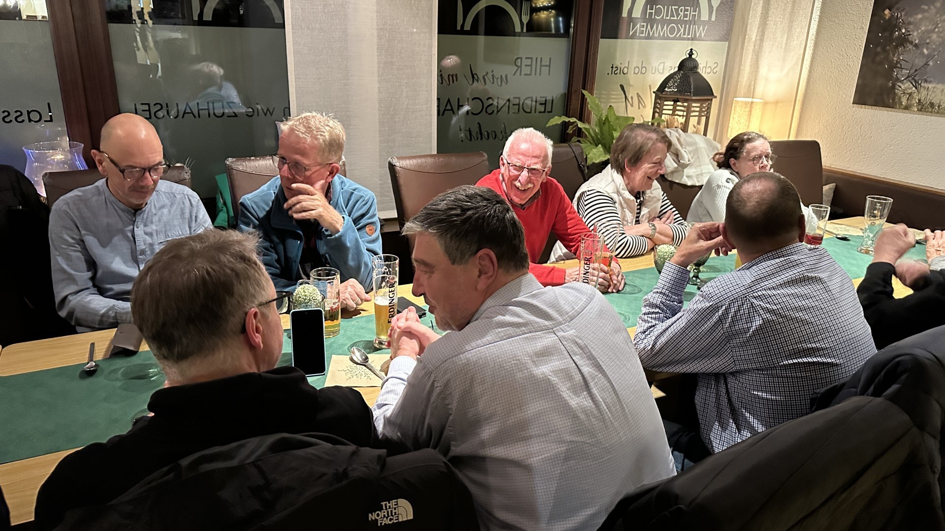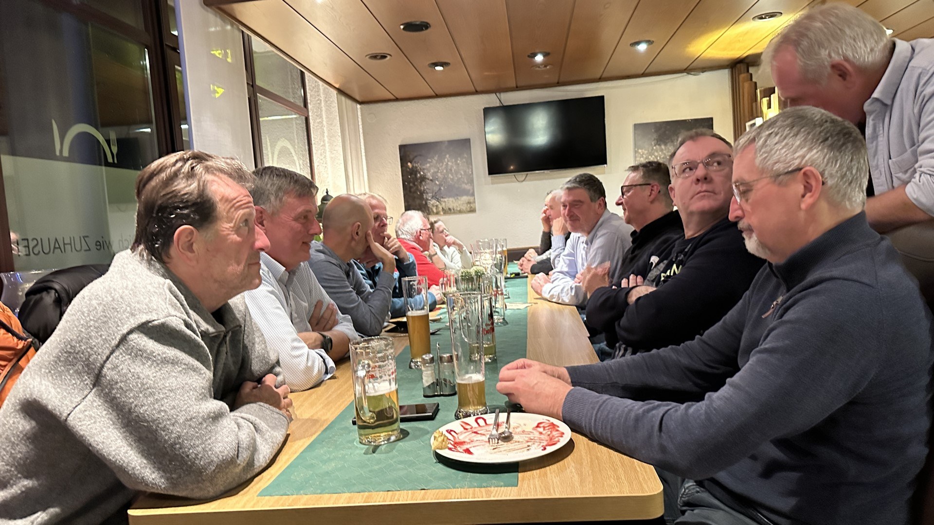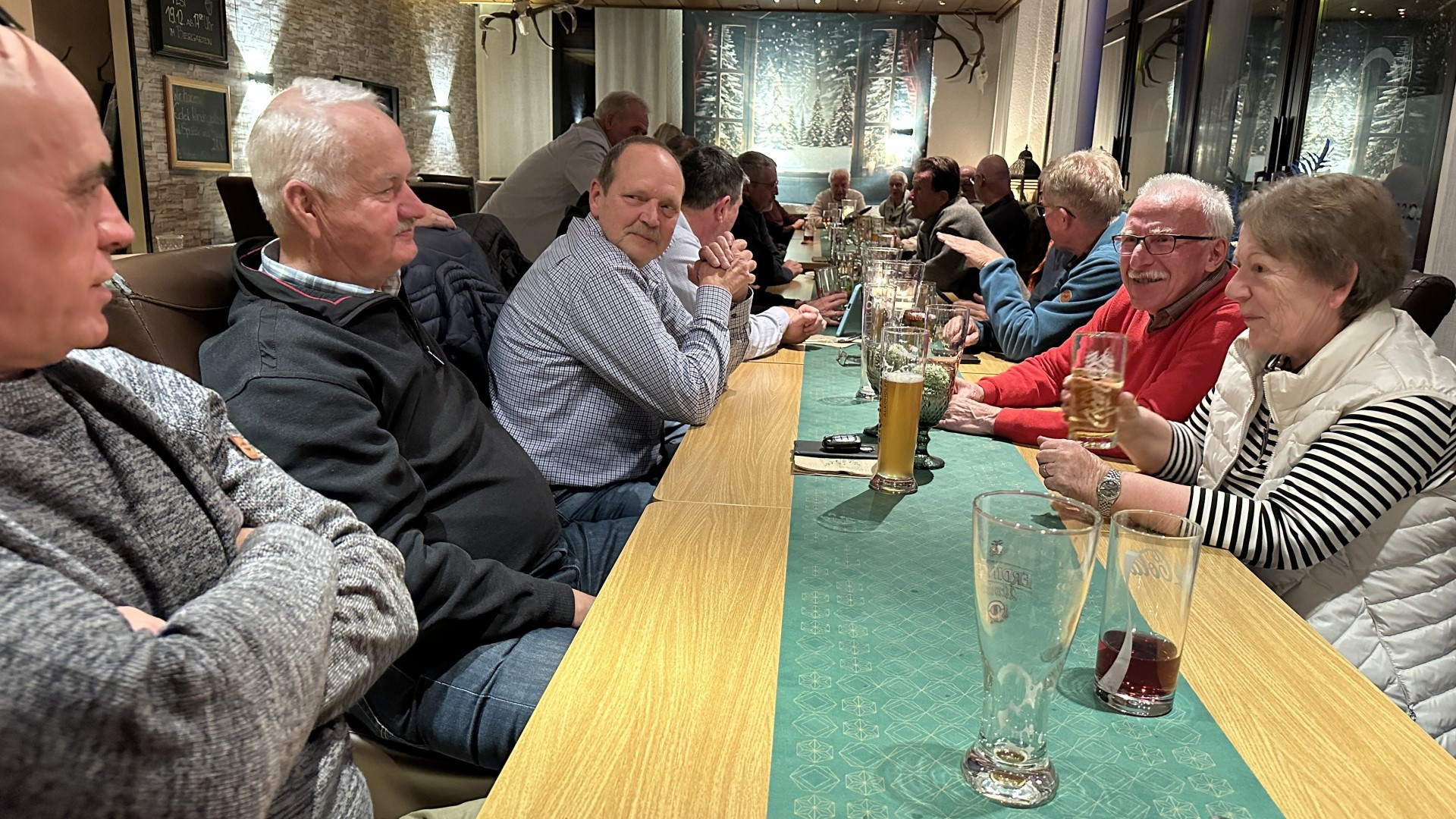 21 Vereinsmitglieder, 8 davon mit Gattin, fanden sich am 21. November 2025 im Fairplay ein, um zusammen die Saison 2025 abzuschließen. Nach den Grußworten des ersten Vorstands ließen sich alle von den Kochkünsten des Fairplay-Wirts verwöhnen: Ein exklusives Hirschgulasch, Zwiebelrostbraten, Schnitzel und der vegetarische Feld-/Wald- und Wiesenteller, um nur einige zu nennen. Eine echt schwäbische Flädlessuppe vorab oder auch ein Eis als Nachgang war auf den von der Fairplay-Wirtin weihnachtlich geschmückten Tischen auch zu sehen.